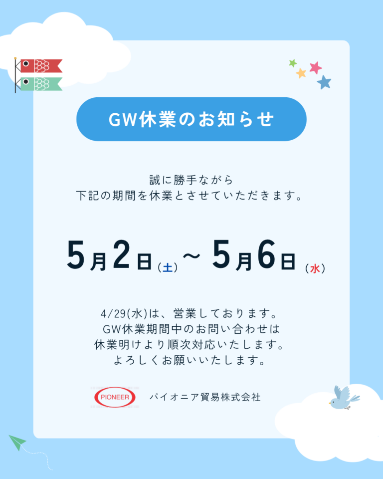 【GW休業日のお知らせ】